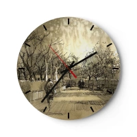 Nástěnné hodiny - Náčrt procházky v parku s cestami a stromy - 30x30cm - Pírkem zastavený okamžik - Moderní nástěnná dekorace do obývacího pokoje, kuchyně a ložnice ARTTOR