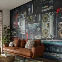 Fototapeta Premium Sand - Stesk po 80. letech - Magnetofon, Hudební zesilovač, Vintage hudební vybavení - 100x70 cm
