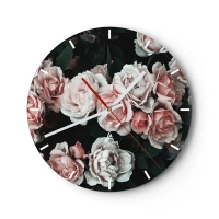 Nástěnné hodiny - Kytice růžových růží na tmavém pozadí - 30x30cm - Růžový ansámbl - Moderní nástěnná dekorace do obývacího pokoje, kuchyně a ložnice ARTTOR