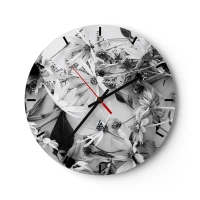 Nástěnné hodiny - Černobílé květiny roztroušené na světlém pozadí v neformálním aranžmá - 30x30cm - Květiny bez kytice - Moderní nástěnná dekorace do obývacího pokoje, kuchyně a ložnice ARTTOR