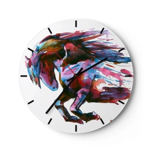 Nástěnné hodiny - Dynamický kůň v akvarelových barvách s rozevlátou hřívou - 30x30cm - U vytržení - Moderní nástěnná dekorace do obývacího pokoje, kuchyně a ložnice ARTTOR