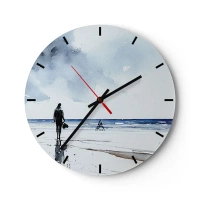 Nástěnné hodiny - Postava na pláži s výhledem na moře - 30x30cm - Rozhovor s mořem - Moderní nástěnná dekorace do obývacího pokoje, kuchyně a ložnice ARTTOR