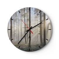 Nástěnné hodiny - Mlha prosvítající stromy v lese - 30x30cm - Mlha se také vzbudila - Moderní nástěnná dekorace do obývacího pokoje, kuchyně a ložnice ARTTOR