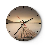 Nástěnné hodiny - Molo na jezeře v paprscích zapadajícího slunce - 30x30cm - Je čas vrátit se… - Moderní nástěnná dekorace do obývacího pokoje, kuchyně a ložnice ARTTOR