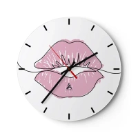 Nástěnné hodiny - Detail růžových rtů proti bílým hodinám - 30x30cm - Jsi připraven na polibek? - Moderní nástěnná dekorace do obývacího pokoje, kuchyně a ložnice ARTTOR