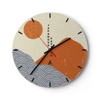 Nástěnné hodiny - Grafické japonské vzory s horami, sluncem a vlnami - 30x30cm - V japonském duchu - Moderní nástěnná dekorace do obývacího pokoje, kuchyně a ložnice ARTTOR