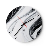 Nástěnné hodiny - Abstraktní černobílé čáry vytvářejí plynulý, kontrastní vzor. - 30x30cm - Spojení protikladů - Moderní nástěnná dekorace do obývacího pokoje, kuchyně a ložnice ARTTOR