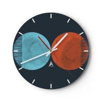 Nástěnné hodiny - Kombinace modrých a červených kruhů s geometrickými čarami - 30x30cm - Pouze geometrie? - Moderní nástěnná dekorace do obývacího pokoje, kuchyně a ložnice ARTTOR