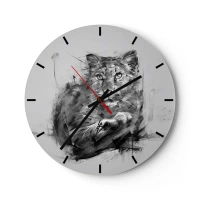 Nástěnné hodiny - Portrét tygra v černobílé abstrakci - 30x30cm - Ano, pozorně poslouchám - Moderní nástěnná dekorace do obývacího pokoje, kuchyně a ložnice ARTTOR