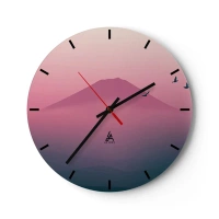 Nástěnné hodiny - Hora za soumraku s růžovými a fialovými odstíny - 30x30cm - Poutníci nad oblaky - Moderní nástěnná dekorace do obývacího pokoje, kuchyně a ložnice ARTTOR