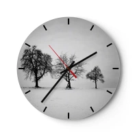 Nástěnné hodiny - Tři osamělé stromy v zasněženém poli v černé a bílé. - 30x30cm - O čem sní? - Moderní nástěnná dekorace do obývacího pokoje, kuchyně a ložnice ARTTOR