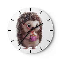 Nástěnné hodiny - Roztomilý ježek držící barevný košíček - 30x30cm - Oslava je každý den - Moderní nástěnná dekorace do obývacího pokoje, kuchyně a ložnice ARTTOR