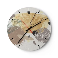 Nástěnné hodiny - Abstraktní linie a skvrny v teplé barevné paletě - 30x30cm - Spontánní kompozice - Moderní nástěnná dekorace do obývacího pokoje, kuchyně a ložnice ARTTOR