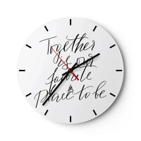 Nástěnné hodiny - Citát „Společně je naše oblíbené místo“ na bílém pozadí s hodinami - 30x30cm - Cítíte to také? - Moderní nástěnná dekorace do obývacího pokoje, kuchyně a ložnice ARTTOR