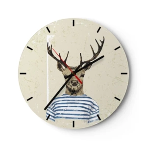Nástěnné hodiny - Kreslený jelen v pruhovaném oblečení na béžovém pozadí - 30x30cm - Protože mám rád pruhované košile! - Moderní nástěnná dekorace do obývacího pokoje, kuchyně a ložnice ARTTOR