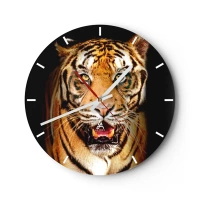 Nástěnné hodiny - Portrét divokého tygra s intenzivním pohledem - 30x30cm - Divokost srdce - Moderní nástěnná dekorace do obývacího pokoje, kuchyně a ložnice ARTTOR