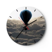 Nástěnné hodiny - Horkovzdušný balón se vznáší nad mraky při východu slunce. - 30x30cm - Poutník nad oblaky - Moderní nástěnná dekorace do obývacího pokoje, kuchyně a ložnice ARTTOR