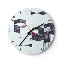 Nástěnné hodiny - Geometrické vzory v černé a bílé - 30x30cm - V duši matematika - Moderní nástěnná dekorace do obývacího pokoje, kuchyně a ložnice ARTTOR