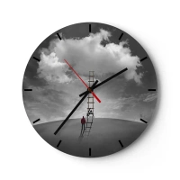 Nástěnné hodiny - Muž šplhající po žebříku k mraku proti obloze - 30x30cm - Všechno je možné - Moderní nástěnná dekorace do obývacího pokoje, kuchyně a ložnice ARTTOR