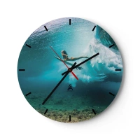 Nástěnné hodiny - Surfař na vlně v křišťálově čisté vodě - 30x30cm - Podmořský svět - Moderní nástěnná dekorace do obývacího pokoje, kuchyně a ložnice ARTTOR
