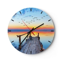 Nástěnné hodiny - Malebné molo při západu slunce - 30x30cm - Autentičnost, ne turistická atrapa - Moderní nástěnná dekorace do obývacího pokoje, kuchyně a ložnice ARTTOR