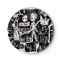 Nástěnné hodiny - Ciferník s dynamickým černobílým uměleckým motivem čmáranice. - 30x30cm - Práva a radosti duševního mládí - Moderní nástěnná dekorace do obývacího pokoje, kuchyně a ložnice ARTTOR