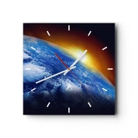 Nástěnné hodiny - Východ slunce nad modrou planetou - 30x30 cm