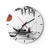 Nástěnné hodiny - Tradiční ilustrace rybáře v lodi proti rudému slunci - 30x30cm - Asijské odpoledne - Moderní nástěnná dekorace do obývacího pokoje, kuchyně a ložnice ARTTOR