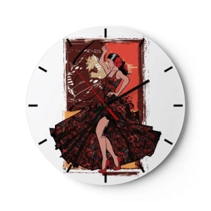 Nástěnné hodiny - Tanečnice v červených šatech s uměleckým pozadím - 30x30cm - V rytmu srdce - Moderní nástěnná dekorace do obývacího pokoje, kuchyně a ložnice ARTTOR