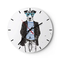 Nástěnné hodiny - Pes s brýlemi a námořnickou košilí - 30x30cm - Maxipes - Moderní nástěnná dekorace do obývacího pokoje, kuchyně a ložnice ARTTOR