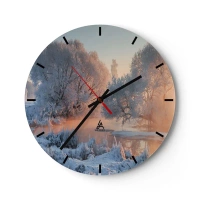 Nástěnné hodiny - Zimní krajina se zamrzlými stromy za úsvitu - 30x30cm - Vše se leskne ve slunečním krystalu - Moderní nástěnná dekorace do obývacího pokoje, kuchyně a ložnice ARTTOR