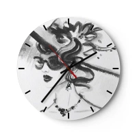Nástěnné hodiny - Černobílá skica elegantní ženy s brýlemi a kloboukem. - 30x30cm - Dáma s charakterem - Moderní nástěnná dekorace do obývacího pokoje, kuchyně a ložnice ARTTOR