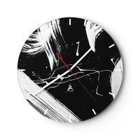 Nástěnné hodiny - Černobílá abstrakce s dynamickými tahy barvy - 30x30cm - Prolomit temnotu - Moderní nástěnná dekorace do obývacího pokoje, kuchyně a ložnice ARTTOR