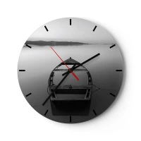 Nástěnné hodiny - Osamělá loď na klidném jezeře v černé a bílé. - 30x30cm - Stesk a melancholie - Moderní nástěnná dekorace do obývacího pokoje, kuchyně a ložnice ARTTOR