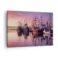 Obraz na plátně - Rybářské lodě v přístavu při západu slunce - 70x50cm - Před dalším dnem - Moderní nástěnná dekorace do obývacího pokoje a ložnice ARTTOR