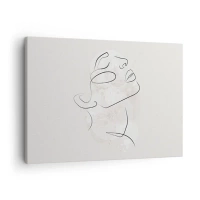 Obraz na plátně - Minimalistický obrys ženské siluety - 70x50cm - Ty jsi záhada… - Moderní nástěnná dekorace do obývacího pokoje a ložnice ARTTOR