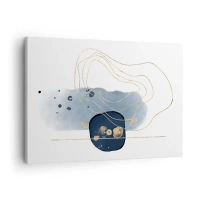 Obraz na plátně - Abstrakce v odstínech modré a zlaté - 70x50cm - Modro-zlatá fantazie - Moderní nástěnná dekorace do obývacího pokoje a ložnice ARTTOR