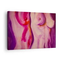 Obraz na plátně - Abstraktní interpretace ženské siluety v růžových a fialových odstínech. - 70x50cm - Óda na ženskost - Moderní nástěnná dekorace do obývacího pokoje a ložnice ARTTOR
