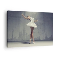 Obraz na plátně - Baletní tanečník v bílých šatech u surové zdi. - 70x50cm - Lehce jako pták - Moderní nástěnná dekorace do obývacího pokoje a ložnice ARTTOR