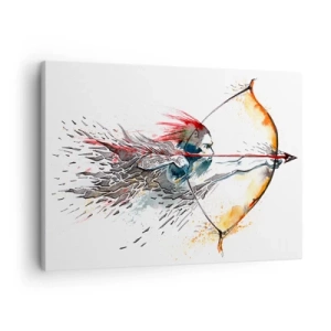 Obraz na plátně - Dynamická akvarelová malba bojovníka s lukem a šípem - 70x50cm - Mytický bojovník s ohnivým lukem - Moderní nástěnná dekorace do obývacího pokoje a ložnice ARTTOR