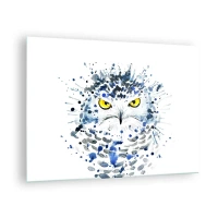 Obraz na skle - Umělecký portrét sovy se žlutýma očima a abstraktními detaily. - 70x50cm - Přímo do očí - Moderní nástěnná dekorace do obývacího pokoje a ložnice ARTTOR