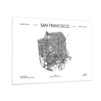 Obraz na skle - Minimalistická mapa ulic San Francisca - 70x50cm - Anatomie San Francisca - Moderní nástěnná dekorace do obývacího pokoje a ložnice ARTTOR
