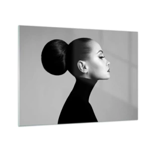 Obraz na skle - Černobílý portrét ženy v elegantním drdolu - 70x50cm - Prostě žena - Moderní nástěnná dekorace do obývacího pokoje a ložnice ARTTOR