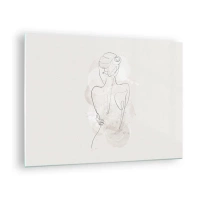 Obraz na skle - Minimalistická linie zobrazující ženskou siluetu na světlém pozadí - 70x50cm - Vlna melancholie - Moderní nástěnná dekorace do obývacího pokoje a ložnice ARTTOR