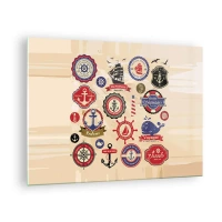 Obraz na skle - Námořní emblémy a symboly na béžovém pozadí - 70x50cm - Námořnické bratrstvo - Moderní nástěnná dekorace do obývacího pokoje a ložnice ARTTOR