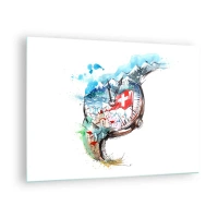 Obraz na skle - Akvarel švýcarské krajiny s vlajkou a hodinkami - 70x50cm - Duch Švýcarska - Moderní nástěnná dekorace do obývacího pokoje a ložnice ARTTOR
