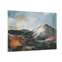 Obraz na skle - Malebná horská krajina v teplých i studených barvách - 70x50cm - Syrové i krásné - Moderní nástěnná dekorace do obývacího pokoje a ložnice ARTTOR