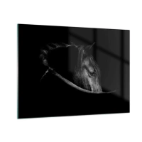 Obraz na skle - Profil černého koně ve stínu s viditelným okem - 70x50cm - Černý kníže - Moderní nástěnná dekorace do obývacího pokoje a ložnice ARTTOR