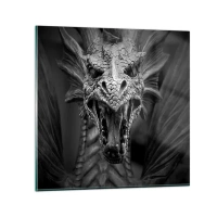 Obraz na skle - Pohádkový drak v šedi - 30x30 cm