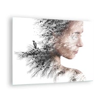 Obraz na skle - Portrét ženy s větvemi v pozadí - 70x50cm - Duch lesa - Moderní nástěnná dekorace do obývacího pokoje a ložnice ARTTOR